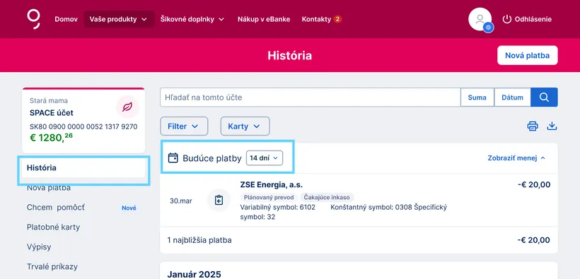 Prichádzajúce či odchádzajúce transakcie, trvalé príkazy, inkasá, platby kartou. O tom všetkom máte s Georgeom dokonalý prehľad.